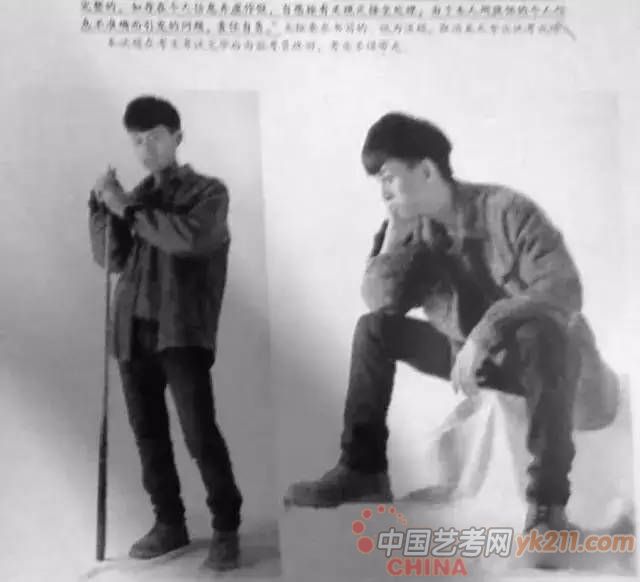 2015年:左腿前右腿后双手放在膝上,正面或45度,夹克牛仔裤运动鞋。(默写,30分钟,8开)