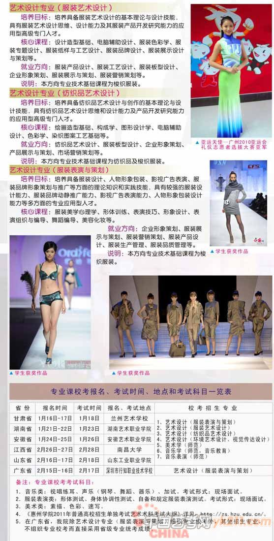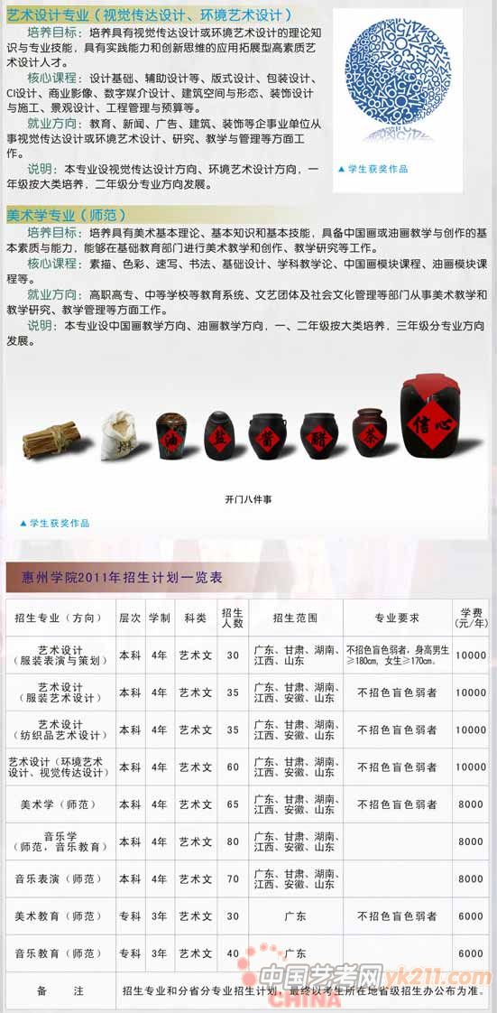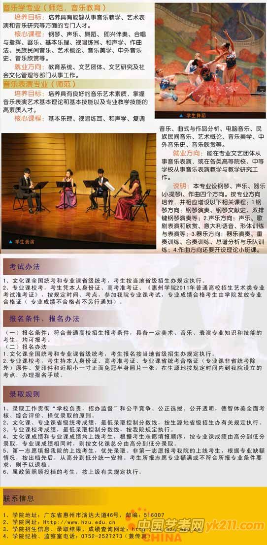 2011年惠州学院艺术类招生简章